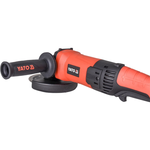 Szlifierka kątowa 1400W Yato YT-82099 wyposażona w tylny uchwyt i włącznik, dzięki czemu doskonale sprawdza się podczas szlifowania różnego rodzaju materiałów. Urządzenie posiada system łagodnego rozruchu oraz specjalną funkcję utrzymywania stałej prędkości na niskich obrotach. Szlifierka pozwala na regulację prędkości obrotowej w zakresie 3000 -12000 obr/min, dzięki czemu operator ma możliwość łatwego dostosowania urządzenia do obrabianego materiału. Urządzenie cechuje się długą żywotnością, dzięki zastosowaniu materiałów wysokiej jakości i odporności na uszkodzenia.