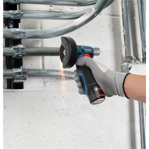 Akumulatorowa szlifierka kątowa GWS 12V-76 (GWS 10,8-76 V-EC) Bosch to kompaktowe, poręczne narzędzie, które daje szerokie możliwości działania. Narzędzie sprawdzi się przy przecinaniu i obróbce zgrubnej drewna, materiałów drewnopochodnych, metalu, kamienia, tworzyw sztucznych, metali nieżelaznych oraz płytek ceramicznych bez użycia wody. Szlifierka kątowa GWS 12V-76 posiada silnik bezszczotkowy i jest zasilana akumulatorem litowo-jonowym 12V.