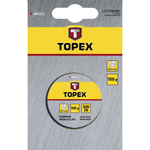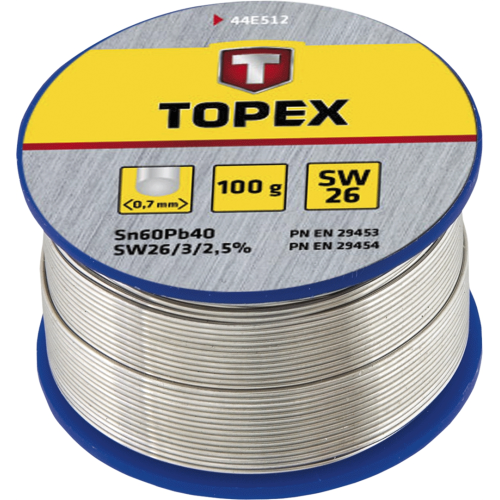 Lut cynowy o 60-procentowej zawartości cyny. Przeznaczony do lutowania elementów elektrotechnicznych. Masa produktu wynosi 100g, średnica - 1mm, topnik - SW 26B.