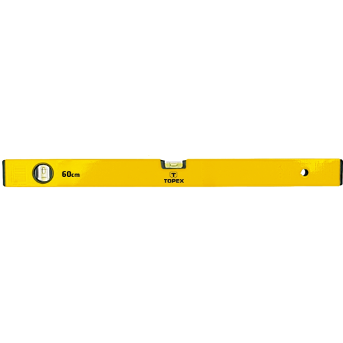 Poziomnica aluminiowa typ 500 TOPEX (nr ref. 29C504) o długości 100cm i dokładności pomiaru +/- 1mm/m. Posiada 2 libelle. Wykonana z wytrzymałego stopu aluminium. Marka TOPEX skierowana jest do majsterkowiczów.