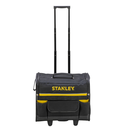 Torba narzędziowa 18" na kołach Stanley 1-97-515 wykonana została z mocnego tkanego nylonu, co zapewnia jej wysoką wytrzymałość. Konstrukcja jest sztywna i wielkogabarytowa, umożliwiając przenoszenie dużej ilości elementów. Wytrzymałe koła zapewniają manewrowalność i odporność na trudnym terenie. Rękojeść została wyprofilowana w taki sposób, aby zwiększała wygodę użytkowania. Dzięki kieszeniom wewnętrznym i zewnętrznym możliwe jest komfortowe przechowywanie różnego rodzaju narzędzi i osprzętu. Sprawne otwieranie torby pozwala szybko dobyć poszczególne narzędzie - dla cennych modeli przeznaczona została bezpieczna, dodatkowa kieszeń.