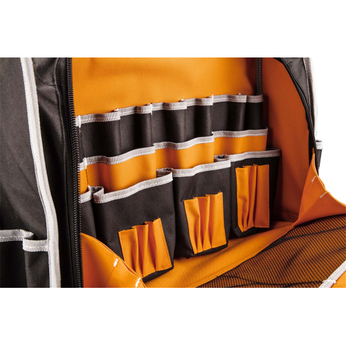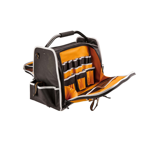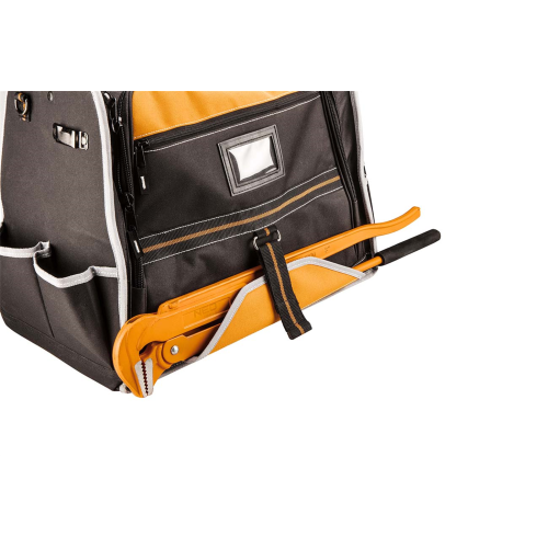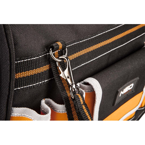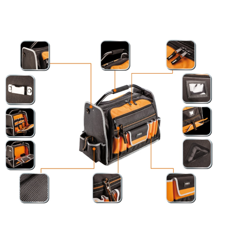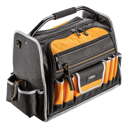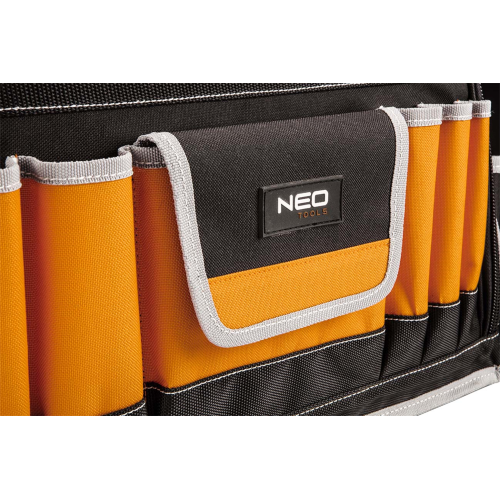 Torba monterska Neo 84-301 sprawdzi się przy przechowywaniu i przenoszeniu różnych narzędzi. Została wykonana z mocnego poliestru 600 D. Posiada usztywnione dno ze stojakami zabezpieczającymi zawartość podczas pracy w trudnych warunkach. Torba narzędziowa Neo została zaopatrzona w 12 kieszeni zewnętrznych i 32 kieszenie wewnętrzne oraz 2 główne komory, co pozwala na przechowywanie wielu narzędzi. Uchwyt oraz pasek ułatwiają przenoszenie torby.