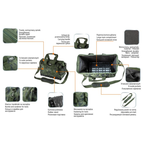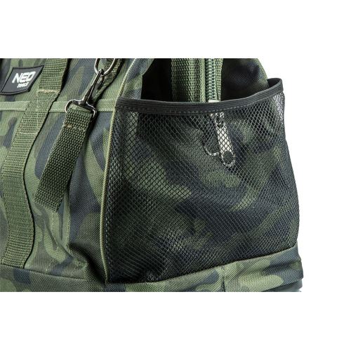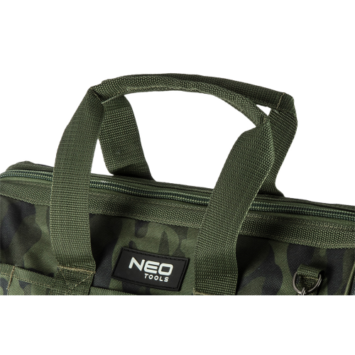 Torba narzędziowa Neo 84-322 wykonana została z wytrzymałego nylonu, który jest w stanie zapewnić bezpieczeństwo przenoszonym narzędziom i akcesoriom. Dno jest wodoodporne i dodatkowo wzmocnione, dzięki czemu nie tylko bezpieczeństwo jest większe, ale także komfort pracy. Możliwość przenoszenia torby za pomocą uchwytu lub paska.
