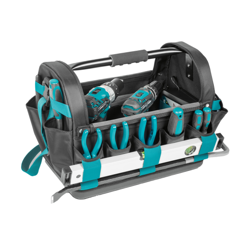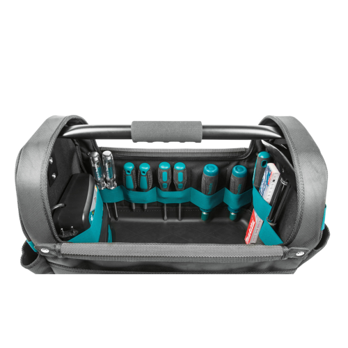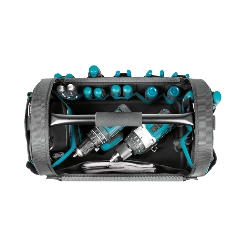 Praktyczna torba narzędziowa Makita E-15403 cechuje przede wszystkim odkryta konstrukcja z rączką. Dzięki takiej formie budowy oraz licznym kieszeniom wewnętrznym i zewnętrznym zapewnia szybki dostęp do niezbędnych podczas prac narzędzi oraz akcesoriów. Torba jest wykonana z wytrzymałych materiałów, co gwarantuje długą żywotność, a ergonomiczny uchwyt ze stali i pianki ułatwia przenoszenie. Model ten jest doskonałą propozycja zarówno dla profesjonalistów, jak też amatorów.