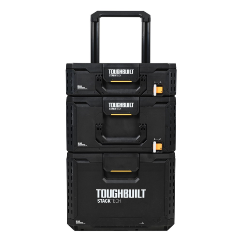 Zestaw systemowych skrzyń narzędziowych StackTech TB-B1S3-B-70R od ToughBuilt to profesjonalny mobilny warsztat składający się z pojemnej skrzyni kołowej, uniwersalnego kufra i mniejszej walizki narzędziowej. Set stanowi znakomity produkt startowy, który można rozwijać o kolejne skrzynki, organizery czy akcesoria. Komplet zawiera także pojemniki i tacki narzędziowe zwiększające możliwości organizacji wnętrza. Wysoka jakość wykonania i nowatorskie rozwiązania gwarantują usprawnienie transportowania oraz przechowywania wszelkiego rodzaj elektronarzędzi, narzędzi ręcznych i osprzętu.