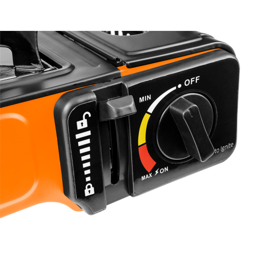 Kuchenka gazowa na naboje 227 g (typ EN 417), zapłon piezo, regulacja płomienia, moc 2,1kW, zużycie gazu 150 g/h, obudowa metalowa, pakowana w walizce.