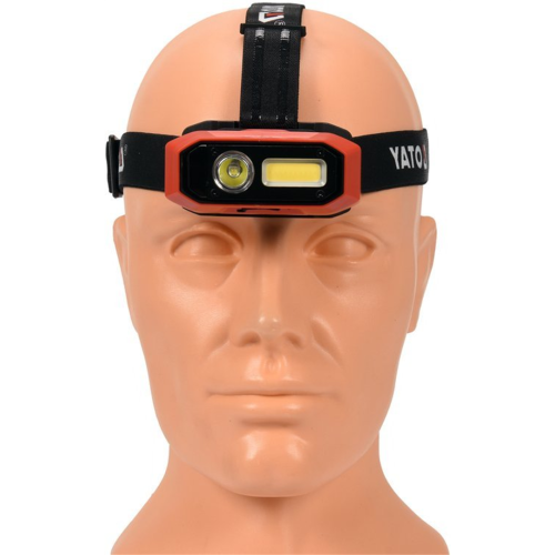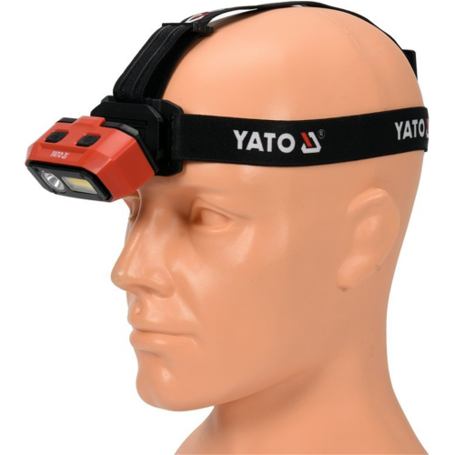 Latarka czołowa Yato YT-08594 wyposażona została w 2 rodzaje diod, dzięki którym użytkownik może oświetlać różnego rodzaju obszar - ponadto operator może wybierać pomiędzy światłem skupionym a rozproszonym, jak również włączyć obie diody w celu uzyskania najmocniejszego światła. Poprzez przytrzymanie włącznika możliwe jest regulowanie siły świecenia. Zamontowany czujnik pozwala włączać i wyłączać latarkę machnięciem przed nim ręką, co zwiększa komfort użytkowania. Latarka posiada funkcję regulacji kąta świecenia w 4 poziomach, pozwalając na dostosowanie jej świecenia do potrzeb użytkownika. Obwódka wokół ledów, po uprzednim naświetleniu, świeci własnym światłem w ciemności przez kilkadziesiąt minut. W razie potrzeby operator może odczepić lampkę od opaski, a magnetyczna podstawa pozwala przyczepić ją do metalowej powierzchni. Sama opaska jest oddychająca, co zwiększa wygodę noszenia. Wskaźnik naładowania baterii informuje świetlnie o czasie pozostałym do końca pracy.