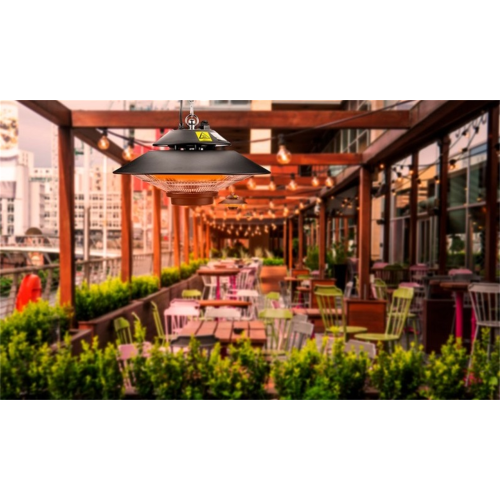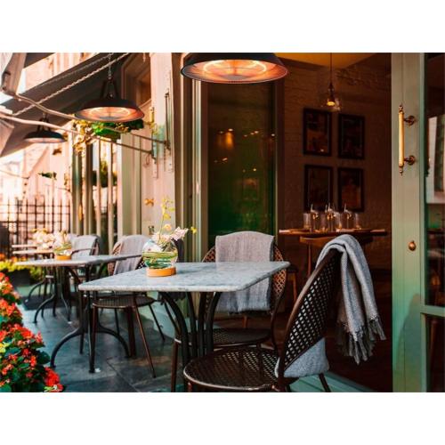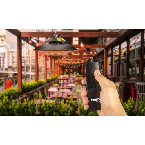 Promiennik sufitowy na podczerwień 90-034 Neo wykorzystuje energię elektryczną do wytwarzania ciepła. To praktyczne urządzenie, które można montować wewnątrz i na zewnątrz. Znajdzie zastosowanie w restauracji, na tarasie, w garażu czy w warsztacie. Cechuje się industrialnym designem. Jest rekomendowany do punktowego ogrzewania obszarów do 9m2. Żywotność lampy promiennika to ok. 5000h. Model 90-034 jest dostarczany z pilotem, który jest wymagany przy obsłudze promiennika. Pierwsze uruchomienie zamontowanego urządzenia następuje po wciśnięciu przycisku na obudowie, a kolejne czynności włącz/wyłącz wykonuje się za pomocą pilota.