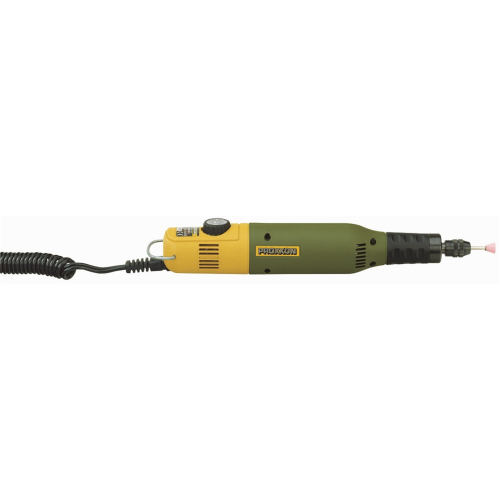 Urządzenie wielofunkcyjne Proxxon 50/E ze stabilną obudową z polyamidu wzmocnionego włóknem szklanym, z miękkimi wstawkami w obrębie uchwytu zwiększającymi komfort pracy. Urządzenie do działania wymaga podłączenia do zasilacza.