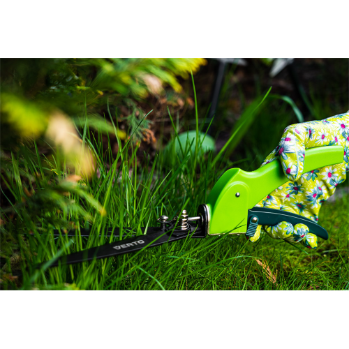 Nożyce do trawy VERTO (nr ref. 15G301) o długości 330 mm. Ostrze o długości 130 mm pokryte powłoką teflonową, zapewniającą ochronę przed korozją. Możliwość obrotu dwufunkcyjnej głowicy w zakresie 90° ułatwia pracę. Ergonomiczne uchwyty zapewniają wygodę podczas użytkowania.