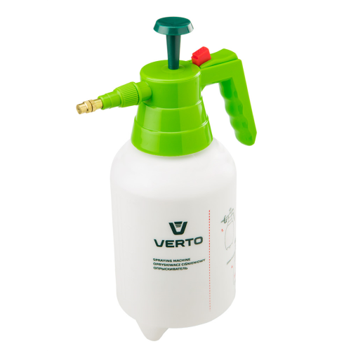 Opryskiwacz ciśnieniowy VERTO (nr ref. 15G502) o pojemności 1.5 litra. Ciśnienie robocze 2 - 2.5 bara. Blokada strumienia podnosi komfort pracy. Opryskiwacz można stosować w zakresie temperatur od 0 do + 45°C.