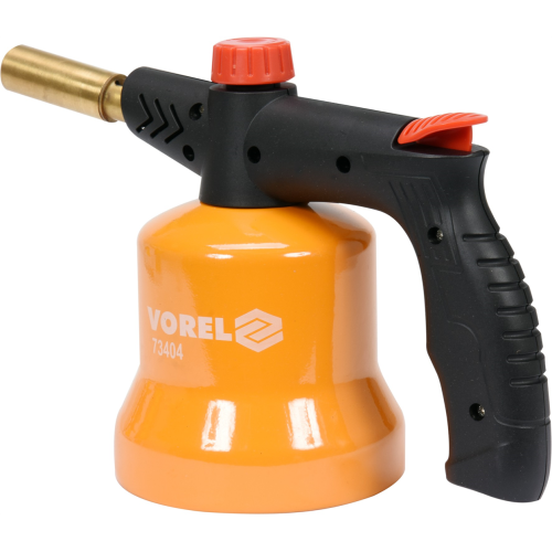Gazowa lampa lutownicza 360 PIEZO 73404 Vorel to uniwersalne urządzenie o szerokim zakresie zastosowań. Sprawdzi się przy takich czynnościach jak, lutowanie, cynowanie, nagrzewanie, opalanie farb, odmrażanie czy rozpalanie grilla. Lampa jest zasilana gazem propan-butan w nabojach 190g (EN417-typ 200). Posiada regulowaną moc płomienia, dzięki czemu można dostosować jej pracę do potrzeb. Lampę można ustawiać w dowolnej pozycji, dzięki czemu obsługa jej jest prosta niezależnie od sytuacji. Obudowa zbiornika palnika Vorel została wykonana z metalu dla większej trwałości.