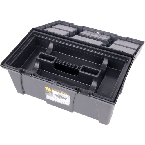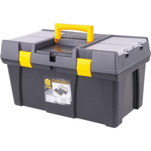 Skrzynka narzędziowa Vorel 78815 posiada tackę z uchwytem na bity, gdzie operator może przechowywać najpotrzebniejsze akcesoria. Wykonanie z mocnego tworzywa zapewnia skrzynce wysoką odporność na uszkodzenia mechaniczne. Boczne uchwyty o odpowiednim wyprofilowaniu zwiększają wygodę przenoszenia. Dzięki dużej ilości przegródek operator może przechowywać różnego rodzaju przedmioty, takie jak akcesoria wędkarskie i narzędzia.