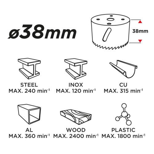 • Głębokość wiercenia: 38mm