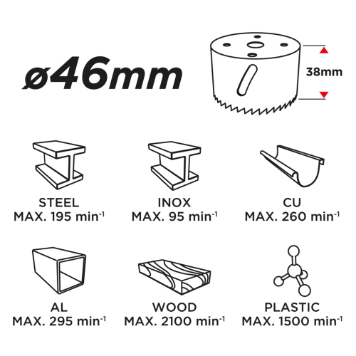 • Głębokość wiercenia: 38mm