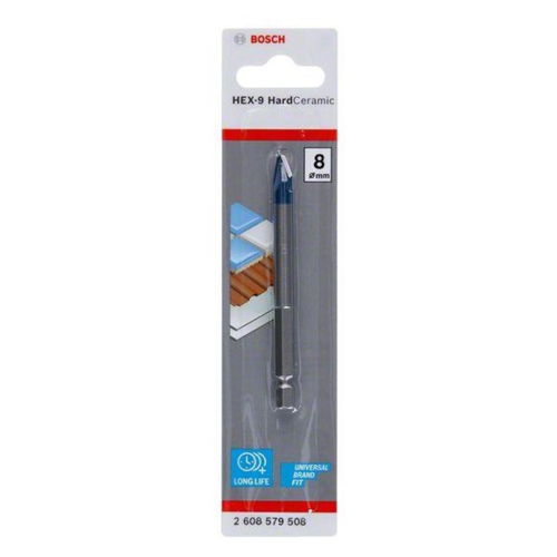 Wiertło do ceramiki 8x90mm HEX-9 HardCeramic Bosch 2608579508 o wysokiej wytrzymałości, dzięki głowicy, która została wielokrotnie wyszlifowana - umożliwia to wiercenie nawet w najtwardszych płytkach. Wiertło nie ślizga się i nie wymaga chłodzenia, a ponadto zapewnia płynność wiercenia, dzięki czemu jego użytkowanie jest bardzo komfortowe. Zastosowanie sześciokątnego uchwytu sprawia, że wiertło mocno się trzyma w wiertarkach i wkrętarkach.