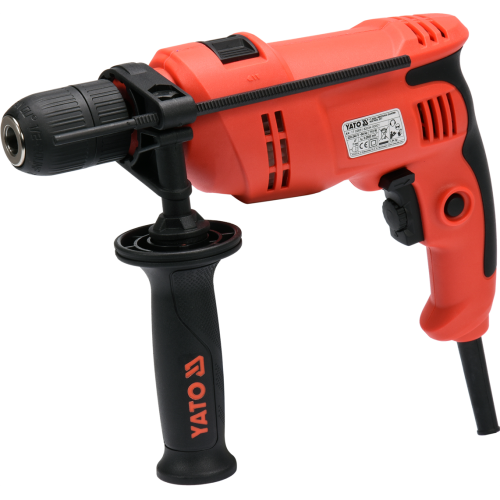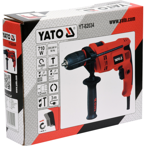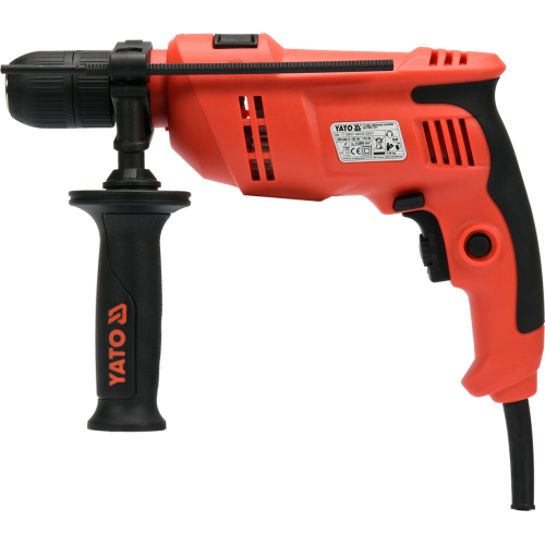 Wiertarka udarowa YT-82034 Yato to klasyczny model z samozaciskowym uchwytem wiertarskim 13mm. Wiertarka umożliwia wiercenie otworów w miękkich materiałach budowlanych, takich jak cegła, a także w drewnie i metalu. Posiada pokrętło na spuście włącznika przeznaczone do regulacji prędkości obrotowej. Wiertarka Yato to niezbędne wyposażenie każdego domu.