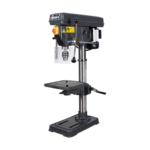 Wiertarka stołowa Proma E-1516B/230 przystosowana do wiercenia, wgłębiania i wycinania otworów w różnych materiałach. Stół roboczy można obrócić o 360° za pomocą sworznia obrotowego oraz pochylić stół o kąt + 45° od poziomu zerowego, co umożliwia nam wywiercenie otworów pod różnym kątem.