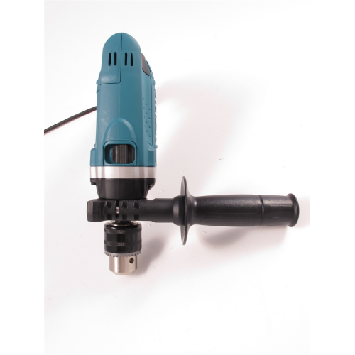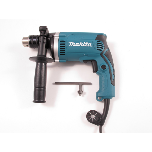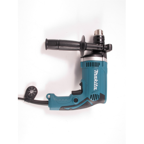 Wiertarka udarowa Makita HP1630K posiada również uchwyt wiertarski z wieńcem zębatym i bez wątpienia wytrzymałą, bo aluminiową, obudowę przekładni. Rękojeść antywibracyjną, ku wygodzie użytkownika i łatwej obsłudze narzędzia, powleczono gumą. Na uwagę zasługuje również fakt, że obudowa silnika jest cylindryczna, a prędkość obrotową reguluje się spustem włącznika.