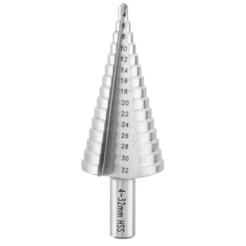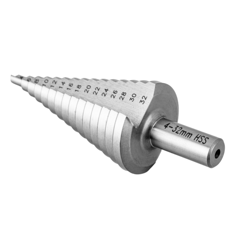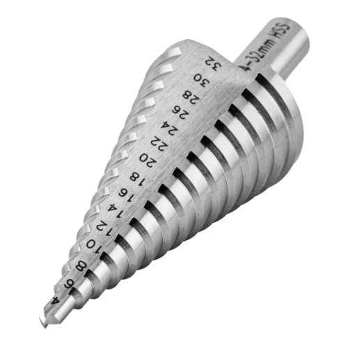 Wiertło stopniowe Graphite 57H740 o średnicy od 4 do 32mm. Pozwala na wiercenie i rozwiercanie otworów w cienkich blachach stalowych, aluminiowych, miedzianych oraz w elementach z tworzyw sztucznych.