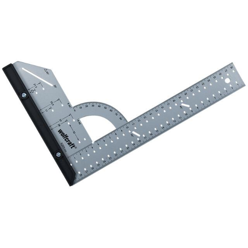 Kątownik uniwersalny firmy Wolfcraft. Jego wymiary to 280x500 mm.