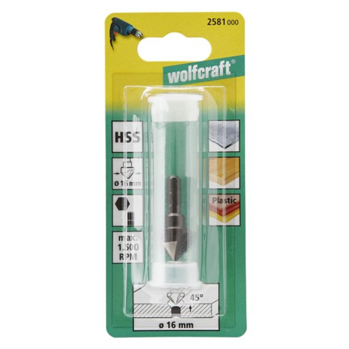 Pogłębiacz 16mm Wolfcraft WF2581000 przeznaczony jest do stosowania z wkrętarkami i wiertarkami. Jego zadanie polega na usuwaniu zadziorów w otworach oraz wykonywaniu gniazd pod łby wkrętów, dzięki którym efekt pracy jest znacznie bardziej estetyczny. Wykonanie ze stali HSS zwiększa żywotność.