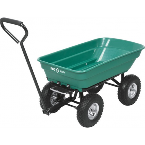 Wózek ogrodowy z kiprem Flo 90204 to uniwersalne akcesorium do transportu liści, drewna, traw i wielu innych. 4 pompowane koła zapewniają duża zwrotność, a przednia oś wózka jest skrętna, co w połączeniu z uchwytem z pianką antypoślizgową zwiększa wygodę użytkowania. Funkcja wywrotki poszerza zakres zastosowań.