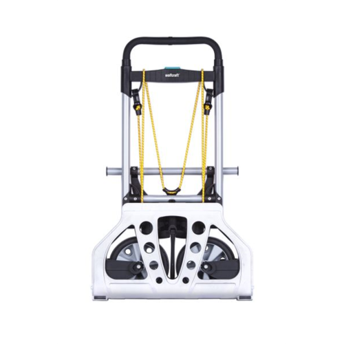 Wózek transportowy TS850 Wolfcraft WF5501000 umożliwia wygodne przewożenie dużych ładunków o maksymalnej masie 100kg.Wózek wyposażono w 3-punktowe zaczepienia zapewniające bezpieczne przewożenie przedmiotów. Dzięki wysuwanemu uchwytowi z centralnym układem blokującym oraz dużym kołom na łożyskach ślizgowych prowadzenie wózka jest bardzo wygodne. Bezproblemowe jest także przewożenie i przechowywanie wózka, gdyż jest on wyposażony w system szybkiego składania i rozkładania.