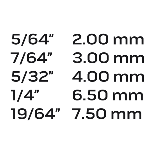 | Średnica[mm] | 2,3,4,6.5,7.5 |