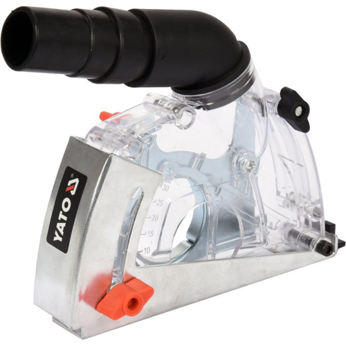 Osłona przeciwpyłowa do szlifierek 125mm Yato YT-82992 z regulowaną średnicą kołnierza mocującego umożliwia zastosowanie akcesorium do jeszcze większej ilości modeli szlifierek. Króciec do odsysania pyłu posiada funkcję redukcji, umożliwiając dopasowanie go do posiadanego systemu odsysającego. Przezroczysta obudowa sprawia, że użytkownik podczas pracy ma zapewnioną dobrą widoczność linii cięcia.