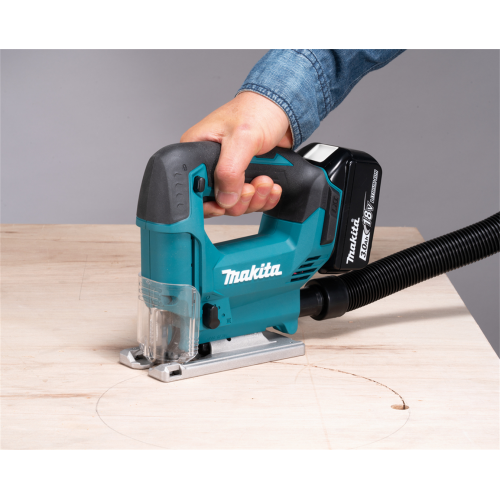 W zależności od zastosowanego brzeszczotu wyrzynarka DJV186Z sprawdzi się przy docinaniu elementów w linii prostej lub wycinaniu krzywizn. Model ten umożliwia zarówno cięcie pod kątem prostym, jak też ostrym do 45 stopni (podstawa urządzenia może być przechylana na lewą lub prawą stronę).