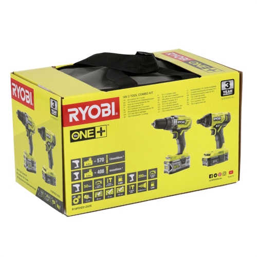 Komplet Ryobi R18PDID2-252S składający się z wiertarko-wkrętarki udarowej R18PD3 i zakrętarki udarowej R18ID2 jest klasycznym połączeniem urządzeń do montażu konstrukcji drewnianych i stalowych. Set zawierający mały i duży akumulator łączy w sobie ergonomię i wydajność. Z myślą o zastosowaniu amatorskim produkty dostarczane są w poręcznej torbie narzędziowej Ryobi.