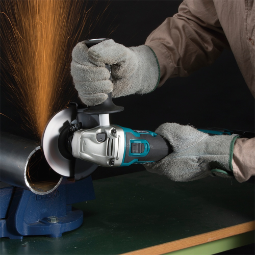 Szlifierka współpracuje z tarczą o średnicy 125 mm, co oznacza, że znajdzie zastosowaniu w szerokim zakresie prac, np. cięciu elementów metalowych, szlifowaniu spawów czy docinaniu płytek ceramicznych.