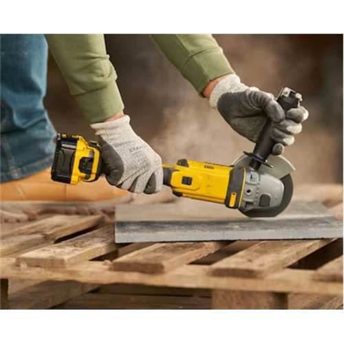 Szlifierka kątowa SFMCG400 jest trzecim elektronarzędziem w zestawie. Urządzenie cechuje się szerokim zakresem zastosowań podczas prac budowlanych (cięcie prętów zbrojeniowych, śrub, rusztowania, płytek, kamienia, lekkie szlifowanie betonu, stali lub kamienia), hydraulicznych, elektrycznych, podczas obróbki metalu oraz drewna. Bez trudu można również usunąć starą warstwę zaprawy lub farby z wybranej powierzchni. Czytelny wyświetlacz poziomu naładowania akumulatora, dzięki czemu wiadomo, jak długo szlifierka może jeszcze pracować. Zasilanie akumulatorowe daje użytkownikowi pełną swobodę ruchów, umożliwia pracę w trudnych, ciasnych miejscach. Komfortowa praca dzięki trzem ustawieniom uchwytu — operator może wybrać optymalny wariant. Ciepło generowane podczas pracy rozpraszane jest przez obudowę przekładni. Dla mniejszego zmniejszenia dłoni użytkownika przycisk uruchamiający można zablokować w pozycji włączonej.