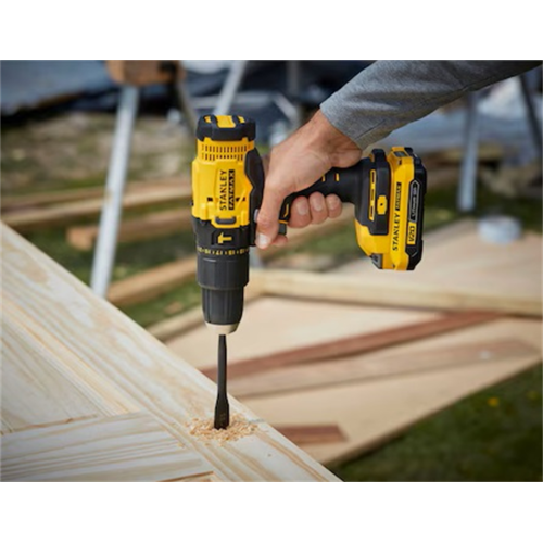Wiertarko-wkrętarka udarowa Stanley SFMCD711 to pierwszy element kompletu. Umożliwia ona pracę na 1 z 2 biegów, dzięki czemu operator może wykonywać zarówno szybkie prace, jak i te wymagające precyzji. Możliwość regulacji momentu obrotowego w 24 stopniach poszerza zakres zastosowań urządzenia. Uchwyt bezkluczykowy usprawnia wymianę elementu roboczego, wprowadzając jednocześnie oszczędność czasu. Zintegrowane oświetlenie LED sprawia, że użytkownik może pracować efektywnie, bezpiecznie i wygodnie w ciemnościach.