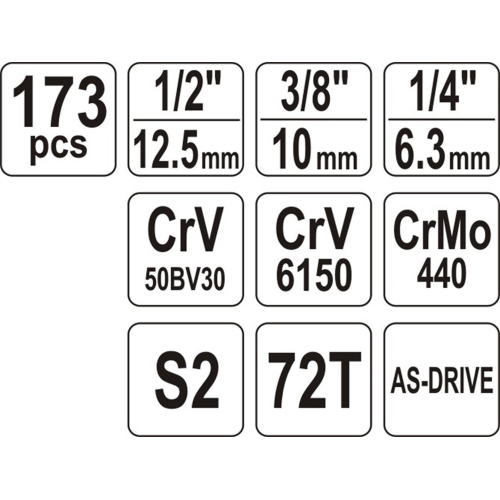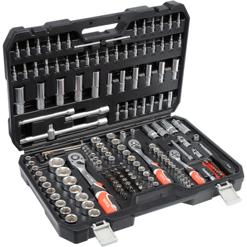 Zestaw narzędzi ręcznych YT-38931 Yato to propozycja dla mechaników i serwisantów. W komplecie znajdują się 172 elementy umożliwiające wykonywanie wielu prac naprawczych. Klucze nasadowe oraz napęd nasadek wykonano z mocnej stali chromowo-wanadowej CrV 50BV3, natomiast bity ze stali S2. Narzędzia te sprawdzą się przy pracach serwisowych wymagających dużych obciążeń związanych z odkręcaniem i przykręcaniem połączeń gwintowanych o różnych rozmiarach.