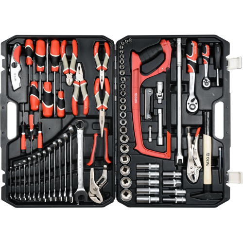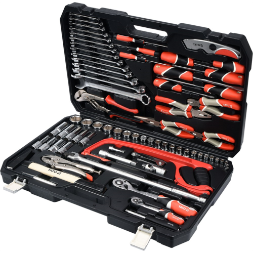 Zestaw narzędziowy Yato YT-38911 to profesjonalny zestaw narzędzi, który został dopasowany do potrzeb wyspecjalizowanych serwisów samochodowych i mechanicznych. 79-elementowy zestaw obejmuje m.in. klucze nasadowe, klucze płasko-oczkowe, wkrętaki, grzechotki oraz wiele innych akcesoriów, które znajdą zastosowanie nie tylko w serwisach, ale również podczas codziennych prac majsterkowych.