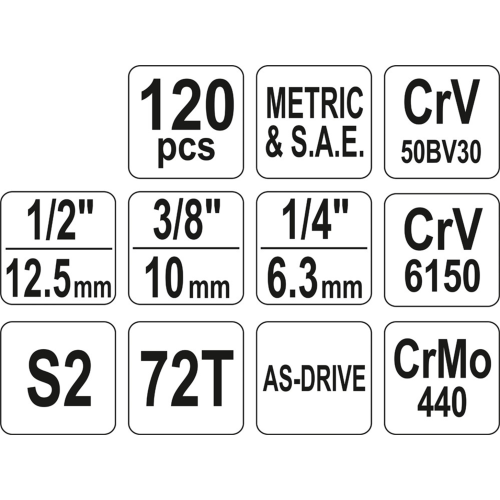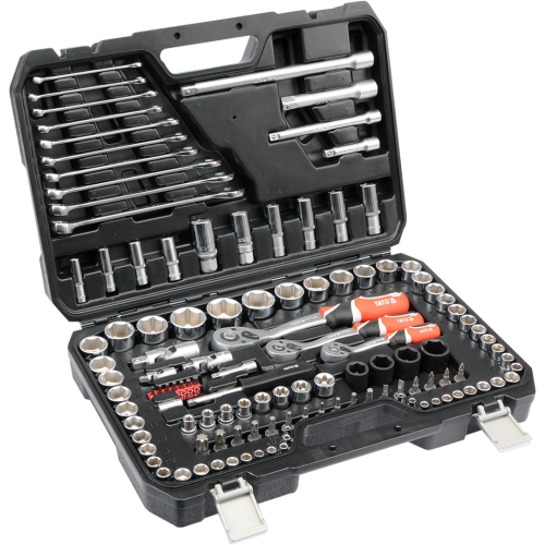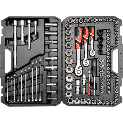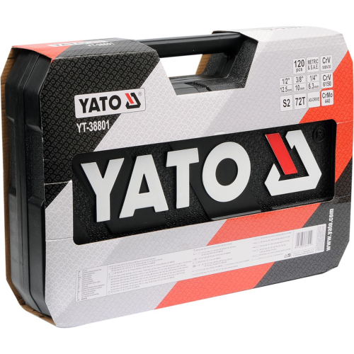 Zestaw narzędziowy (120szt.) Yato YT-38801 to profesjonalny zestaw narzędziowy opracowany pod kątem potrzeb wyspecjalizowanych serwisów samochodowych i mechanicznych. 120-elementowy zestaw zawiera m.in. klucze nasadowe, końcówki wkrętakowe, klucze płasko-oczkowe oraz szereg innych akcesoriów ułatwiających pracę. Szeroki wybór nasadek pozwala na odkręcanie i dokręcanie śrub i połączeń gwintowych o szerokim zakresie rozmiarów nominalnych.