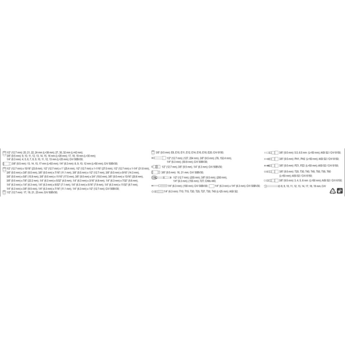 - Nasadki 1/4" calowe: 5/32", 3/16", 7/32", 1/4", 9/32", 5/16", 11/32", 3/8", 7/16", 1/2"