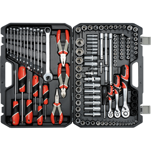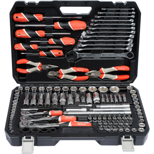 Zestaw narzędziowy 129 części Yato YT-38881 to kompletny zestaw niezbędnych podczas różnego rodzaju prac warsztatowych i serwisowych. Bogaty wybór kluczy, nasadek, przedłużek oraz wielu innych akcesoriów niezbędnych podczas przykręcania i odkręcania połączeń gwintowych o różnych rozmiarach nominalnych. Doskonały zestaw narzędzi do wymagających i precyzyjnych prac.