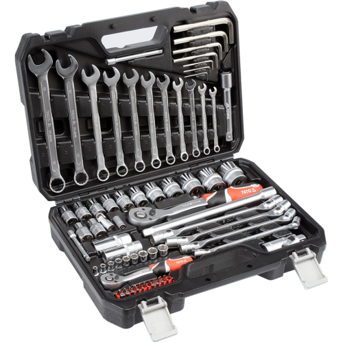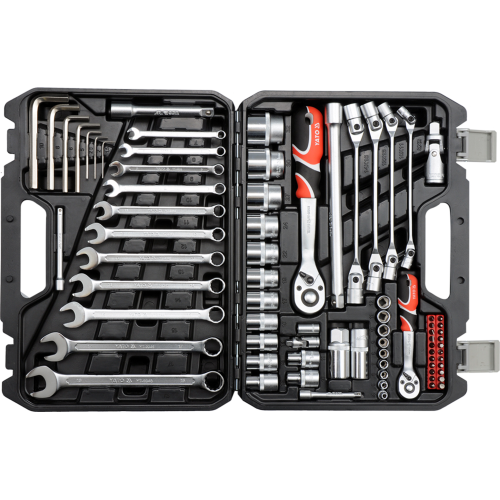 Zestaw narzędziowy Yato YT-38781 to uniwersalny zestaw narzędzi składający się z 77 elementów. Niezbędnik każdego warsztatu samochodowego i serwisu. Doskonały zestaw przeznaczony do precyzyjnych prac pod obciążeniem. Szeroki wybór kluczy nasadowych i przegubowych usprawni większość prac naprawczych i modyfikacyjnych.