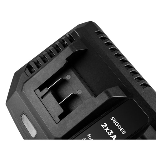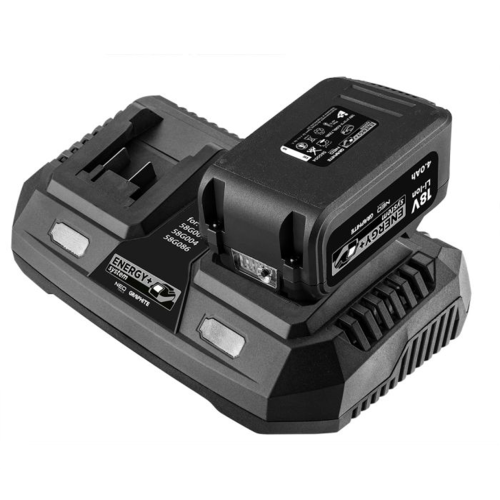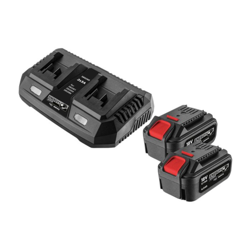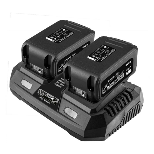 Oba akumulatory to modele o zwiększonej do 4 amperogodzin pojemności wykonane w technologii litowo-jonowej. Technologia ta zapewnia długą żywotność i krótki czas ładowania – do pełna w około 120 minut. Wystarczy umieścić je w ładowarce (bez różnicy czy oba na raz, czy pojedynczo), która sygnalizuje postęp ładowania diodą LED i poinformuje o jego zakończeniu. Elektroniczny system kontroli czuwa nad procesem i zapobiega przegrzewaniu. Dzięki temu nie musisz się martwić nadzorem i możesz pracować bez skomplikowanego planowania – z pewnością nie zabraknie Ci energii do zasilania narzędzi.
