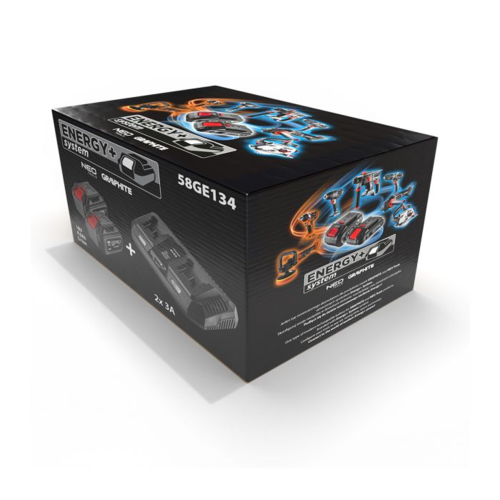 Utrzymaj swoje akumulatorowe elektronarzędzia w ciągłej pracy bez obaw o stan naładowania baterii. Ten zestaw zawierający 2 akumulatory 18 V 4.0Ah z podwójną ładowarką Graphite 58GE134 pasuje do wszystkich narzędzi z serii Energy+ marek Graphite oraz Neo i jest idealnym ich dopełnieniem. Prosty w obsłudze, bezpieczny i niezawodny, sprawdzi się w zadaniach z użyciem narzędzi, które wymagają większej mocy lub wszędzie tam, gdzie liczy się dłuższy czas pracy.